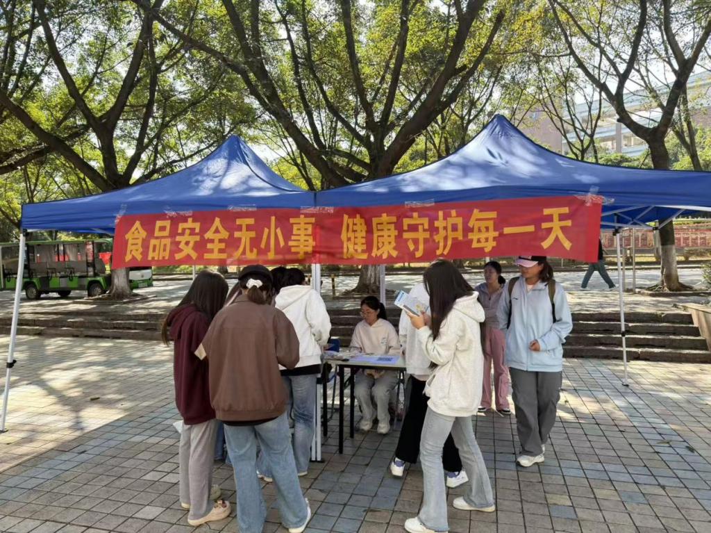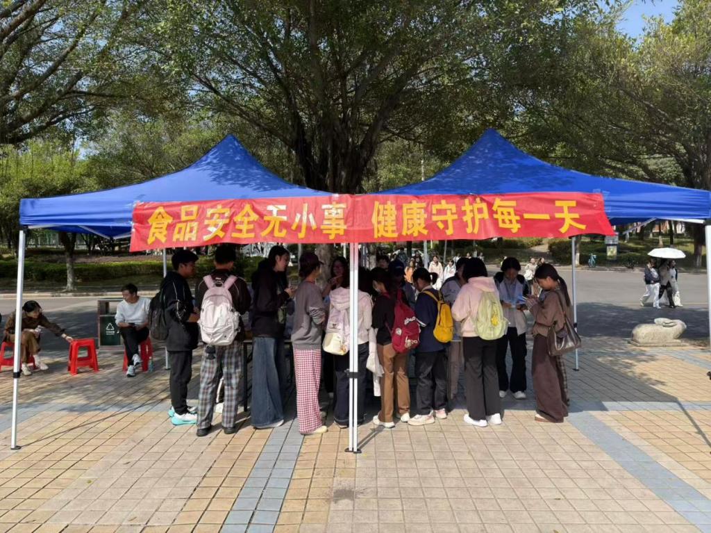 饮食服务部与伙食管理委员会于10月20日至28日联合举办“食品安全宣传周”活动。通过线上知识竞答与线下互动游戏相结合的方式,在雁山一、二号食堂广场向师生普及食品安全知识,倡导“食品安全我重视,安全就餐我践行”的理念,有效提升了学生的食品安全意识。