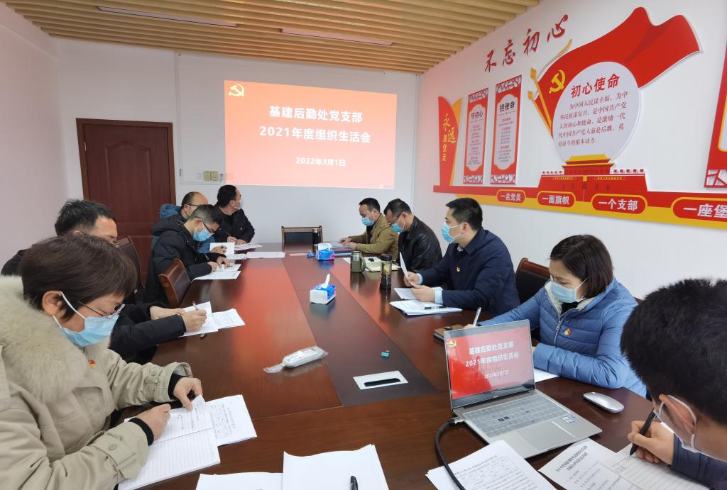 3月1日下午,基建后勤处党支部在雁山行知楼B510会议室召开2021年度组织生活会,支部全体党员参加了会议,会议由支部书记代武社主持。