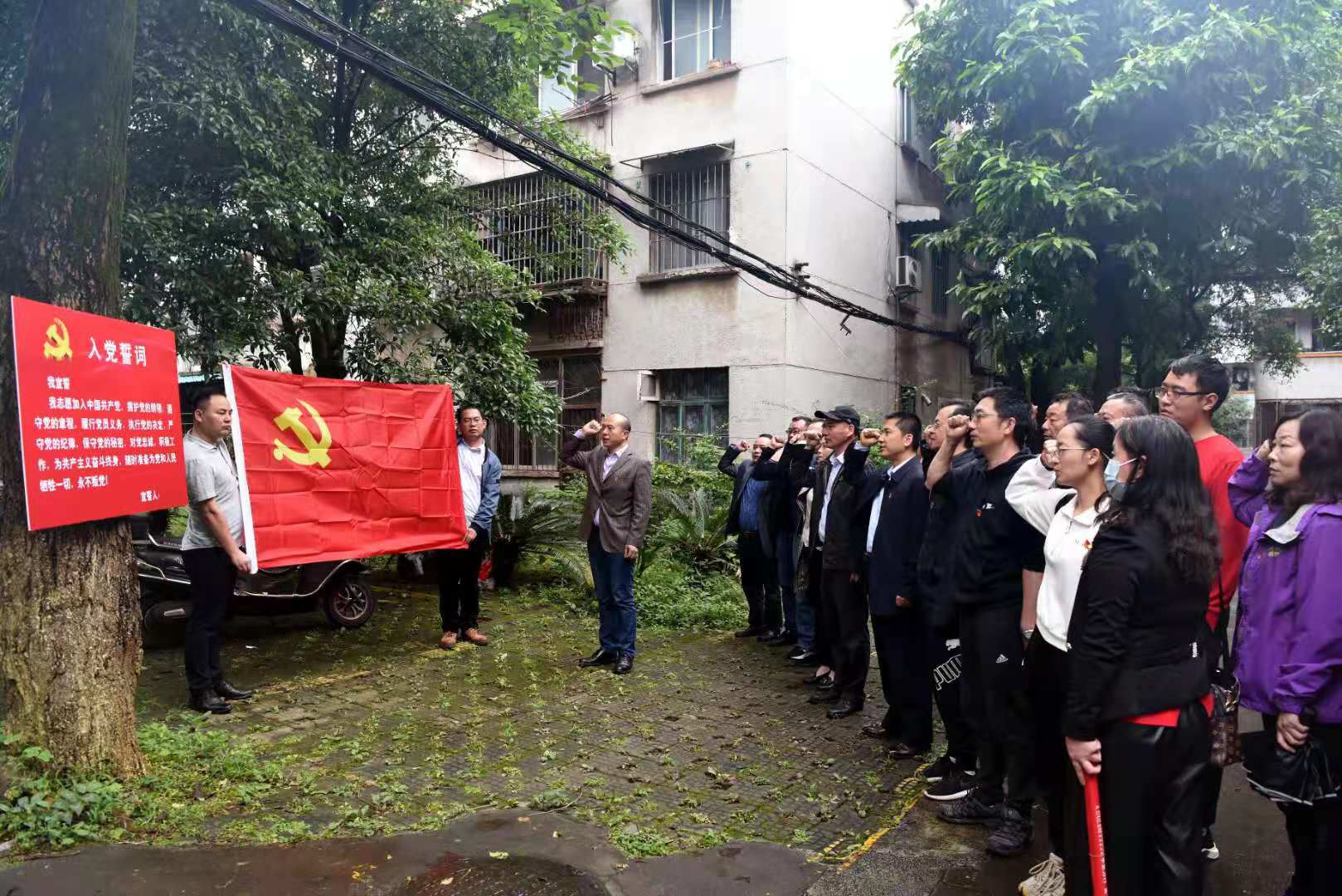 在南校区家属区老旧小区改造调研现场,市城建公司党支部书记王承云同志带领与会党员重温了入党誓词。