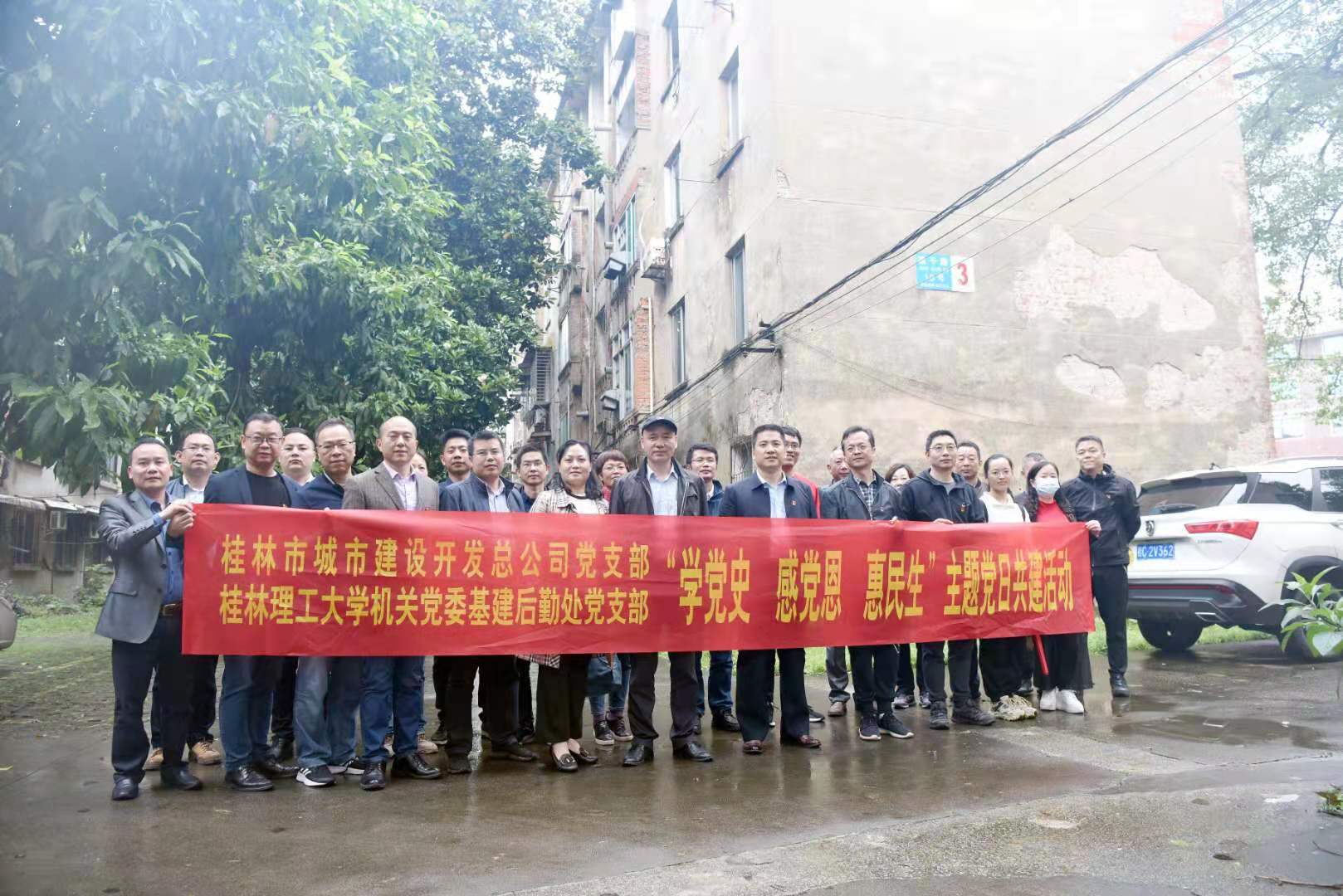 为落实党史学习教育“我为群众办实事”实践活动任务,切实有效推动学校老旧小区改造工程,基建后勤处党支部联合桂林市城市建设开发总公司党支部,于5月21日下午在屏风校区大学生创新创业基地301会议室开展“学党史、感党恩、惠民生”主题党日共建活动。基建后勤处支部和城建公司支部20多名党员参加活动。