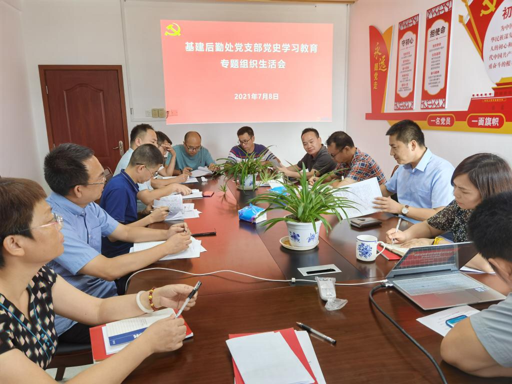 为推动党史学习教育深入开展,根据学校工作部署,7月8日上午,基建后勤处党支部在雁山行知楼510会议室召开党史学习教育专题组织生活会,全体党员参加会议。会议由支部书记代武社同志主持。