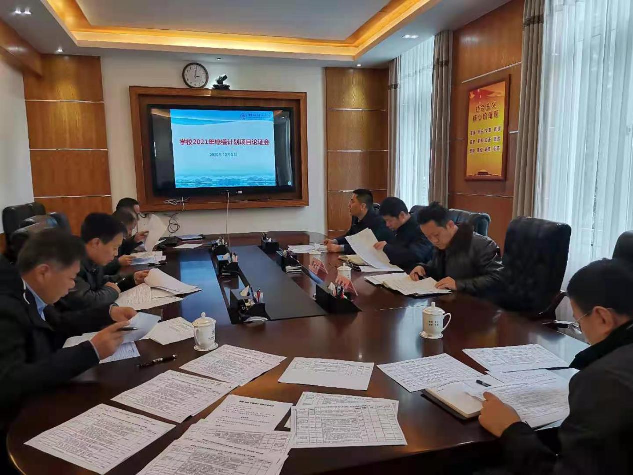 2020年12月3日下午,学校2021年修缮计划项目论证会在屏风第二会议室组织召开,会议由邓国彬副校长主持。学校总会计师曾繁荣、校办、财务处、基建后勤处、审计处、后勤服务集团、资产管理处主要负责人参加了会议。