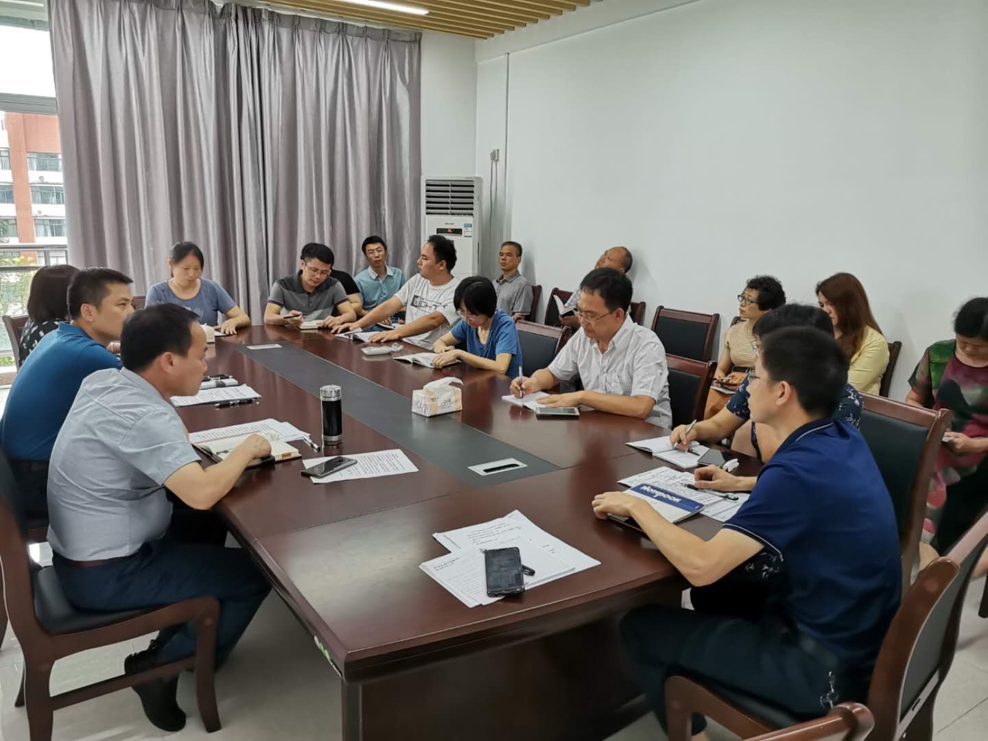 会上学习了学校相关文件,代武社处长从四个方面强调了暑假前后的工作要求:一要按照要求做好疫情防控工作,严格健康情况每日报告和教职工外出审批制度,严格假期值班坐班制度;二要积极落实重点工作责任状,认真总结上半年的工作,做好下半年工作计划;三是要做好安全稳定工作,对在建工地、办公区域进行一次安全隐患排查,做好汛期防汛减灾工作;四要利用假期集思广益,谋划科室工作,为下学期全处开展战略研讨作准备。