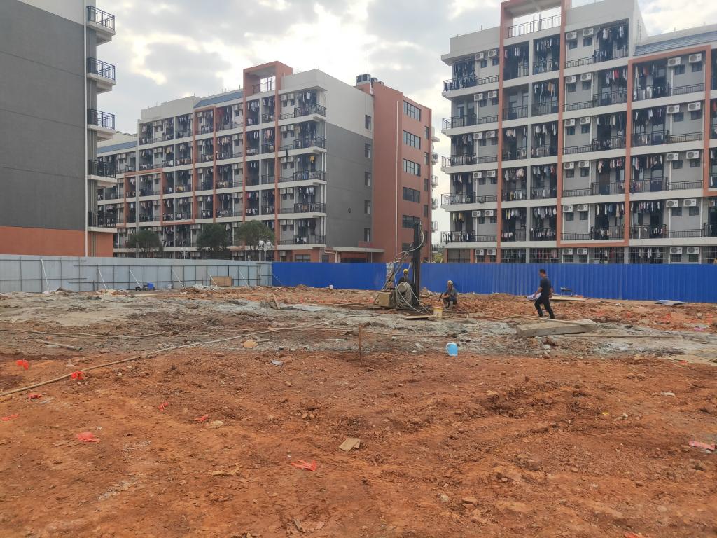 我校待建雁山校区7a学生宿舍楼项目于12月13日顺利领取施工许可证,现场也于当日正式开工,根据施工部署目前施工地基处理部分(高压旋喷桩)。