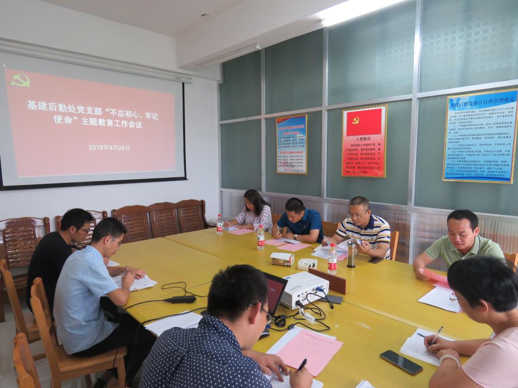 为了认真贯彻落实党支部《“不忘初心、牢记使命”主题教育实施方案》,推动党支部主题教育抓紧抓好,9月26日下午,基建后勤处党支部在雁山校区行知楼510会议室召开“不忘初心、牢记使命”主题教育工作部署会议,学校党委常委、副校长王敦球同志以普通党员的身份参加了此次会议,会议由基建后勤处支部副书记农庆能同志主持。