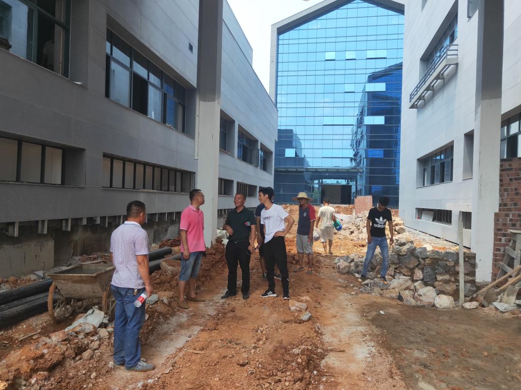 8月19日,基建后勤处孟永华副处长带领相关工地代表到雁山校区对6#学生宿舍附属项目、工程实训楼附属项目以及体育馆项目等在建项目暑期进行安全及施工进度检查,并解决现场遇到的技术问题。