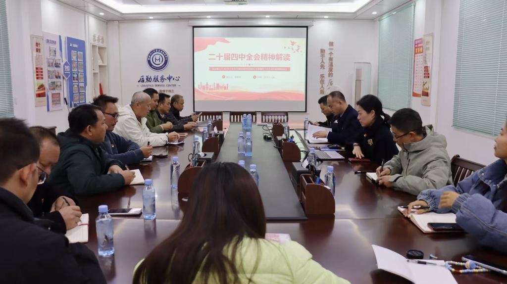 为推动党的二十届四中全会精神深度融入后勤服务工作,切实把学习成果转化为服务师生运转的实际效能,11 月 20日下午,后勤服务中心党支部召开“学习贯彻党的二十届四中全会精神”专题党课。党课由支部书记主讲,支部全体党员参加学习。